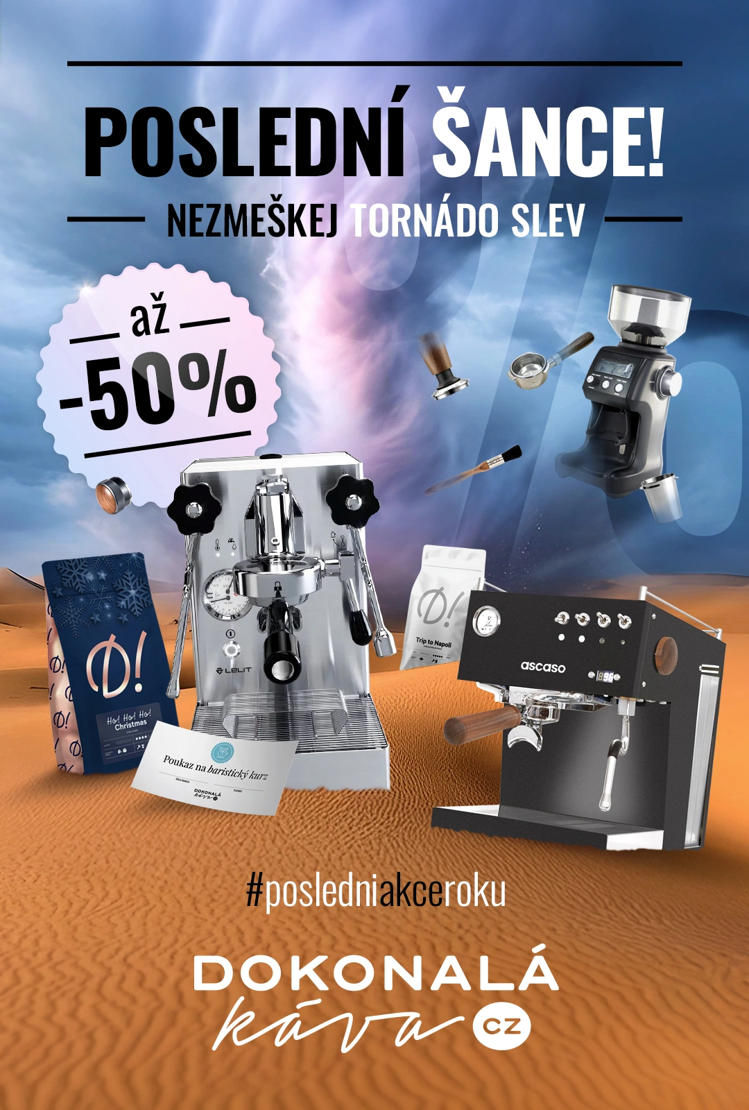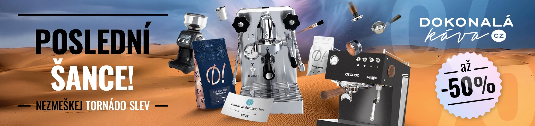 Poslední akce roku. Kávovary, mlýnky, kurzy, baristické potřeby až -50%❗️😱 Tvoje poslední šance.