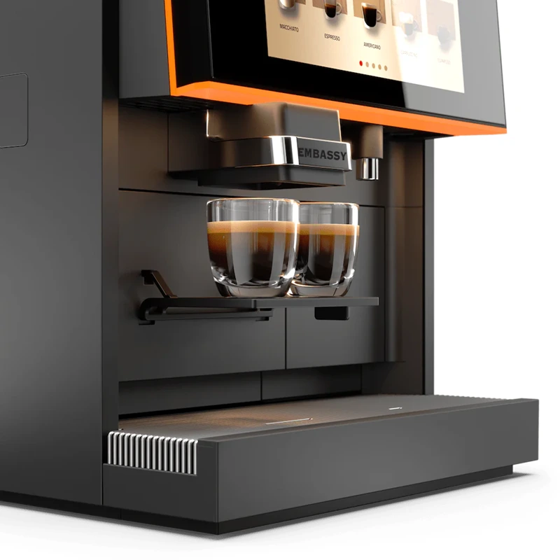 Díky dvěma ocelovým mlýnkům a čtyřem samostatným zásobníkům (pro dva druhy kávových zrn a dvě instantní směsi) nabízí Embassy Cartago širokou škálu nápojů od espressa po čokoládové speciality.