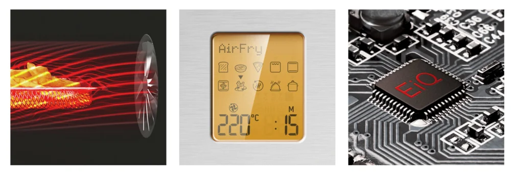 Integrovaný ventilátor zrychluje proces vaření a zajišťuje lepší cirkulaci vzduchu. Díky tomu můžete zkrátit dobu přípravy až o 30 %, což oceníte při přípravě rychlých večeří nebo svačinek pro rodinu a přátele.